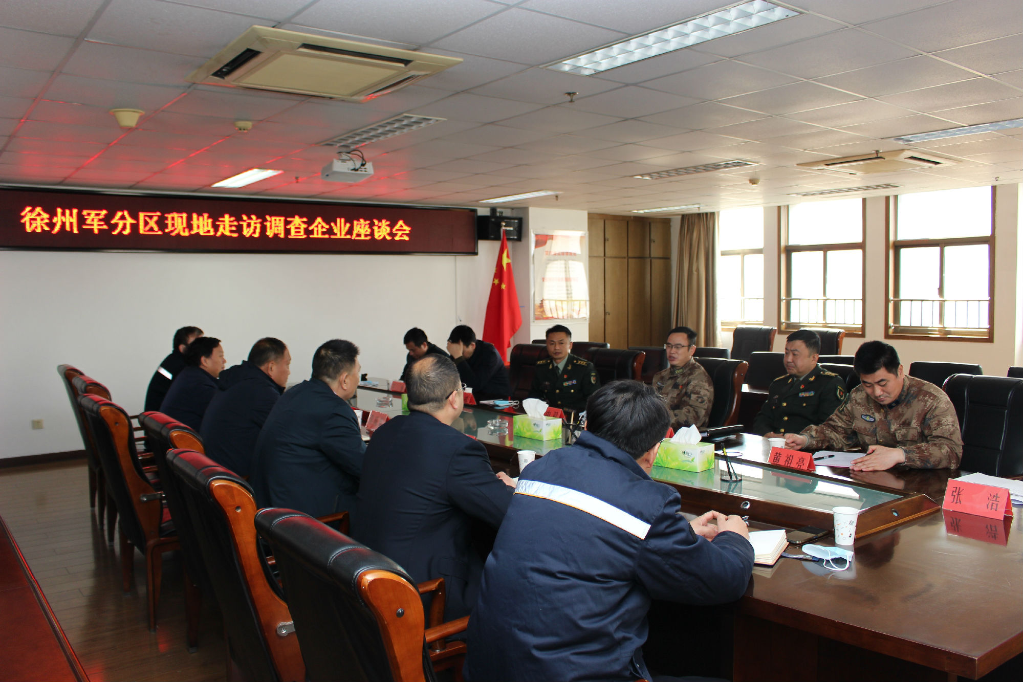 2月22日上午,徐州市軍分區(qū)政委李中雙,泉山區(qū)政府副區(qū)長王龍,泉山區(qū)人武部部長趙超,政委杜法祥,參謀黃祖亮、參謀張學(xué)儒一行到集團走訪座談。集團總經(jīng)理馮陸陸,常務(wù)副總經(jīng)理蔣成彪,副總經(jīng)理丁玉華,紀(jì)委書記、工會主席袁夫松參加會議。