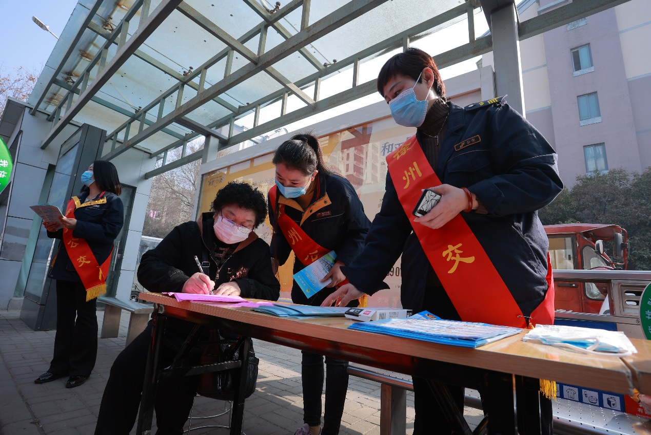 活動(dòng)現(xiàn)場(chǎng),懸掛起了標(biāo)有“公交送溫暖、服務(wù)走在前”的橫幅標(biāo)語,志愿者們統(tǒng)一身著行業(yè)服,身披鮮紅綬帶。大家分工明確,以飽滿的精神面貌向市民宣傳綠色出行,發(fā)放《徐州公交乘車線路指南》,引導(dǎo)市民文明乘車,解答市民問題,協(xié)助駕乘人員做好“健康碼”查驗(yàn)工作,幫助老年人注冊(cè)“健康碼”,教老年人使用“徐州公交”APP查詢公交線路實(shí)時(shí)狀態(tài),攙扶特需乘客上下車等。