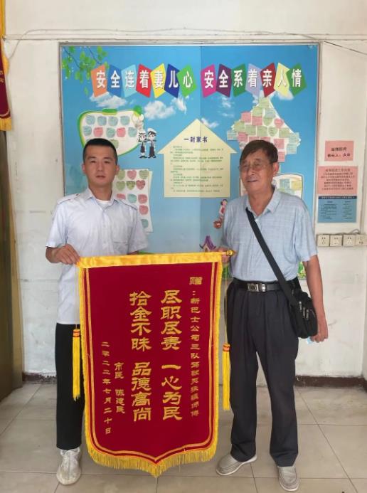 2022年7月25日上午,市民陳老先生拿著一面印有“盡職盡責(zé)一心為民,拾金不昧品質(zhì)高尚”的錦旗,來到徐州公交新巴士公司湖濱調(diào)度室,表揚(yáng)和感謝18路公交駕駛員張猛。