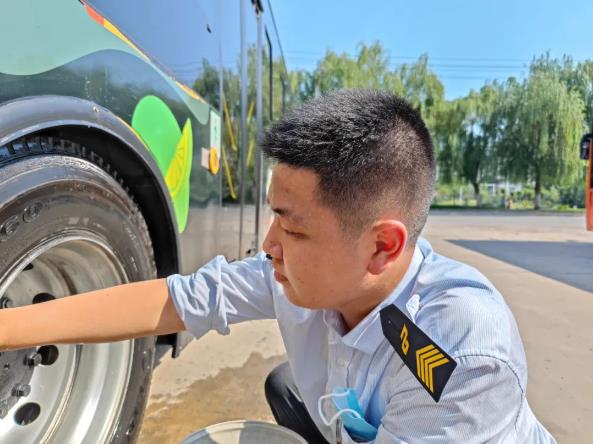 “衣服都濕透了,別弄了,先歇歇吧?!薄皼]事,我把衛(wèi)生弄好了就去。”......眼前這個小伙是603路的張?zhí)祧?,趁著休停時間,他一邊用布擦拭著輪轂,一邊用手擦拭臉上的汗珠。忙完后,發(fā)現(xiàn)發(fā)車時間已到,他立即回到駕駛室,等待乘客的到來和發(fā)班指令,沒來得及喝上一口水。