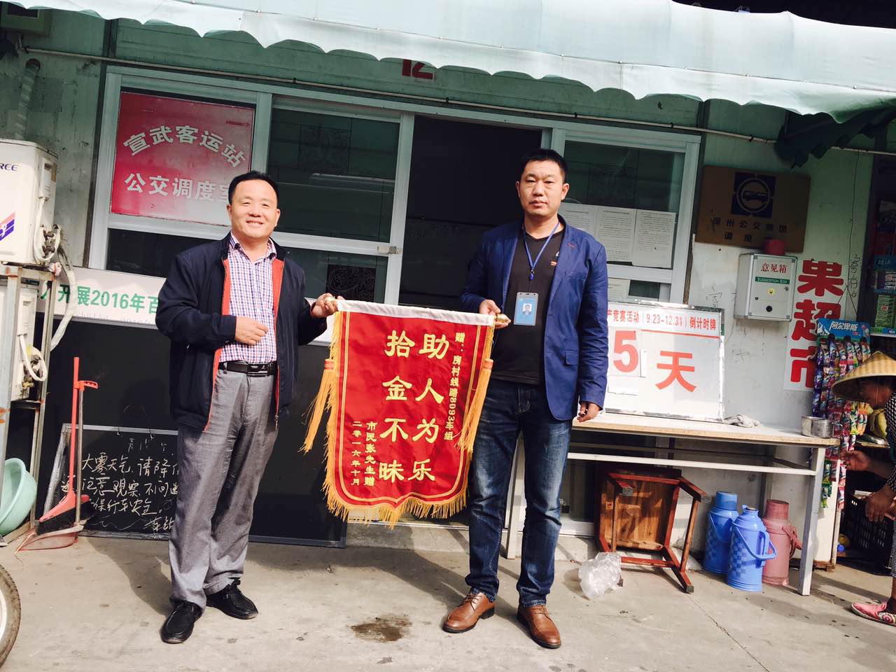 83路附線乘務(wù)員侯閃閃拾到1800元現(xiàn)金歸還——10月6日上午,83附線路乘務(wù)員侯閃閃撿到一個(gè)裝有棉衣的手提袋,經(jīng)檢查棉衣口袋中有現(xiàn)金1800元。侯閃閃將物品交到調(diào)度室保管,經(jīng)過車站多方聯(lián)系,失主張先生于次日上午來(lái)到公交宣武車站調(diào)度室將失物領(lǐng)回,并送來(lái)錦旗表示感謝。