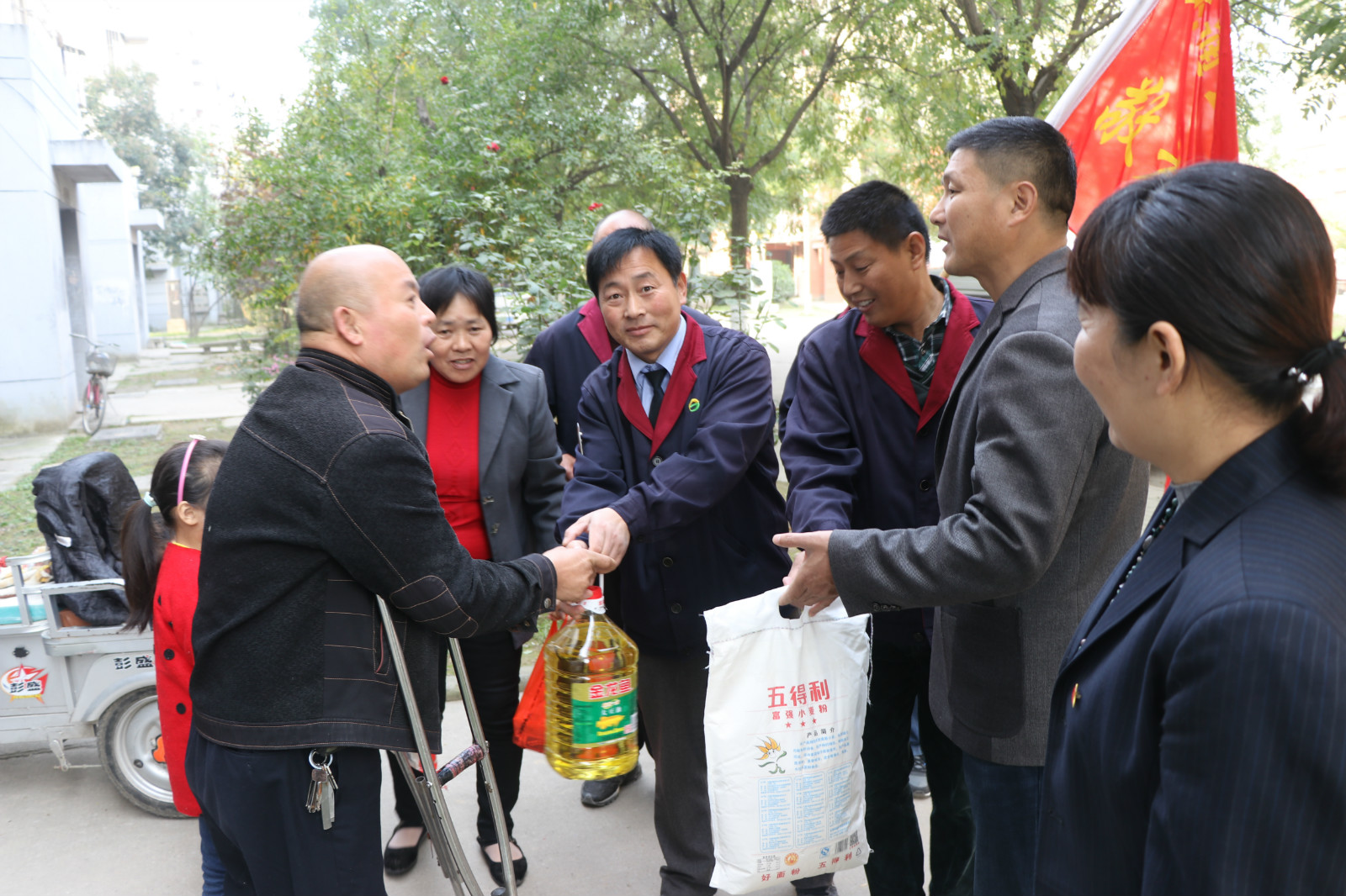 10月28日重陽節(jié),全國“敬老文明號”14路線志愿者服務(wù)隊(duì),來到惠民小區(qū)開展“雙關(guān)愛”活動,關(guān)愛空巢和半失能老人,來到“一對一”結(jié)對幫扶的張金富、張金設(shè)、劉云強(qiáng)等4位失能和半身能老人家中,為他們送去了米、面、油等生活品。