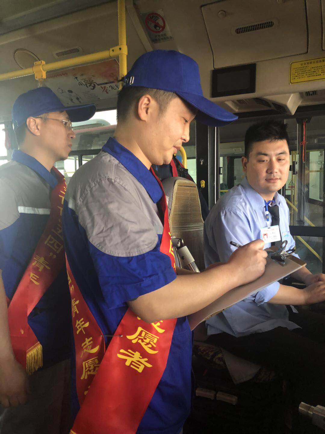 47名公交青年職工身披紅色綬帶,分組來(lái)到民樂(lè)園、風(fēng)華園、惠民小區(qū)、高鐵、淮西客運(yùn)站等居民小區(qū)、站臺(tái),發(fā)放《公交乘車指南》,邀請(qǐng)熱心乘客填寫《乘客滿意度調(diào)查表》,傾聽市民的意見和建議。同時(shí),幫助市民安裝手機(jī)“掌上公交”APP,添加徐州公交微信公眾號(hào)方便市民及時(shí)了解公交信息動(dòng)態(tài),并贈(zèng)送紀(jì)念品。在高鐵等公交站臺(tái),公交青年看到需要幫助的乘客,還不時(shí)去攙扶老年乘客、幫助乘客搬運(yùn)行李等,在淮西客運(yùn)站車場(chǎng),保修青年志愿者幫助駕駛員檢修車輛,傾聽駕駛員意見和建議。