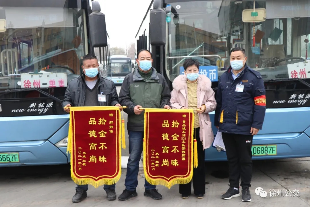 1月21日下午3時(shí),一位女士拿著兩面錦旗來(lái)到淮海文博園公交樞紐調(diào)度室,感謝808路駕駛員邢偉師傅及車(chē)隊(duì)工作人員熱心幫助她尋找遺失物品。