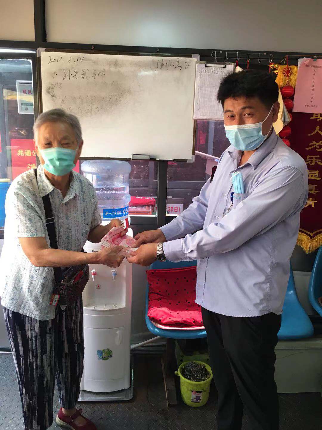 8月14日上午,段世望像往常一樣駕駛61路8294號車從徐村開往宣武市場,在宣武市場車站打掃衛(wèi)生時,在座位下發(fā)現(xiàn)一個錢包,段師傅立即將包交到車站值班室,包內(nèi)裝有身份證及四千余元現(xiàn)金。此時,段師傅正準(zhǔn)備返回車廂做出車前準(zhǔn)備,迎面碰到了心急如焚尋找失物的老人。