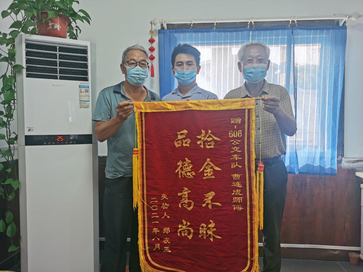 8月30日中午11點左右,市民鄭先生與同伴在大福源乘坐606路公交車趕往九七醫(yī)院就醫(yī),到醫(yī)院后發(fā)現(xiàn)錢包丟,鄭先生萬分著急,在同伴的提醒下,他來到606路韓山調度室尋找失物。果不其然,鄭先生的錢包被駕駛員曹連成師傅送到調度室妥善保管。鄭先生萬分感謝說道:“錢包里除了現(xiàn)金和各類銀行卡外,還有醫(yī)???、社保卡,補辦十分麻煩,咱們司機師傅真是幫了大忙。”9月1日,鄭先生特意送來錦旗表達謝意。