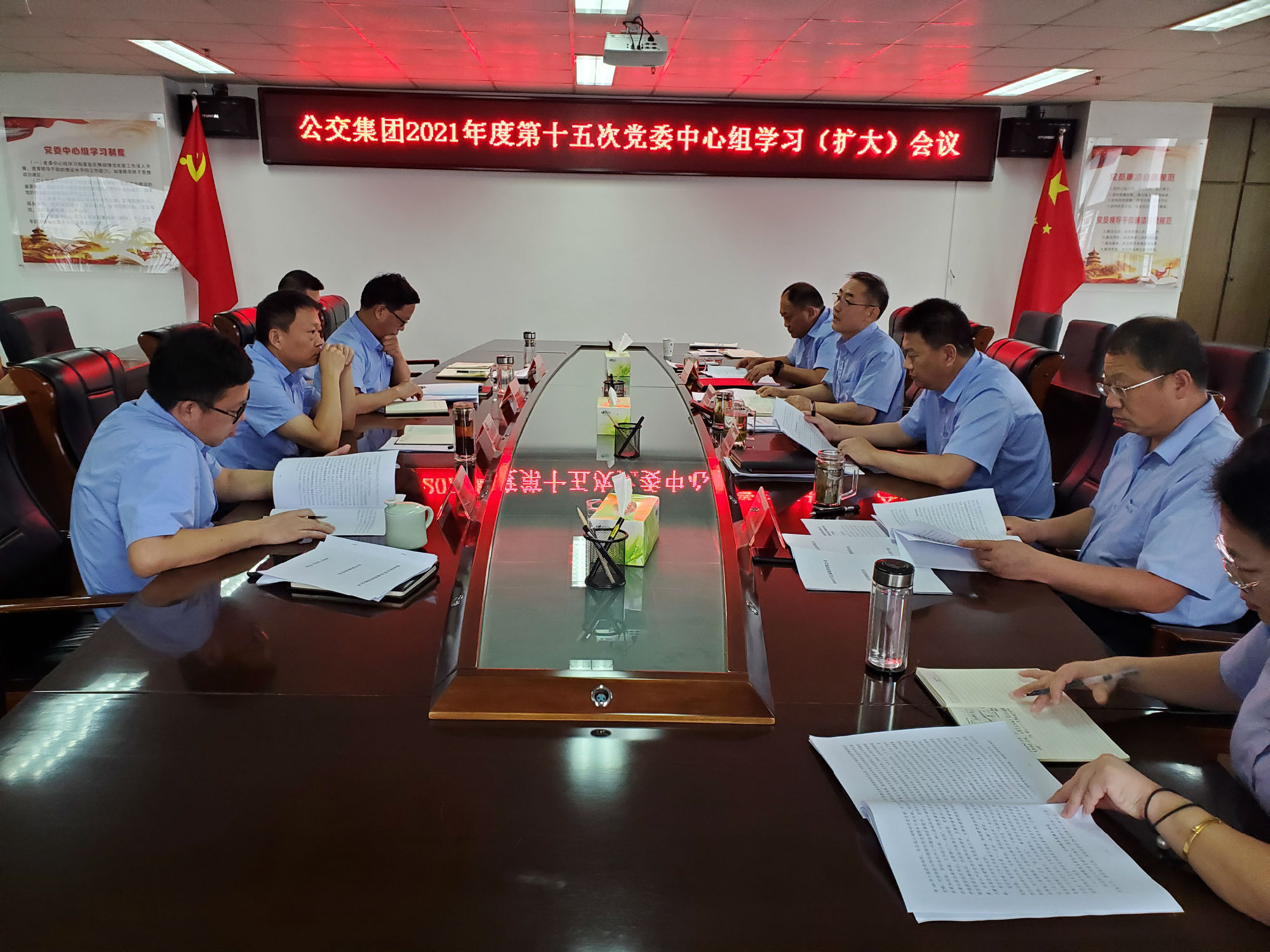 9月27日下午,公交集團(tuán)黨委召開中心組學(xué)習(xí)會(huì),專題學(xué)習(xí)了交控集團(tuán)9月24日召開的“爭(zhēng)當(dāng)表率、爭(zhēng)做示范、走在前列,譜寫‘強(qiáng)富美高’新徐州建設(shè)現(xiàn)代化新篇章”讀書調(diào)研活動(dòng)和黨史學(xué)習(xí)教育專題研究成果交流會(huì)上的領(lǐng)導(dǎo)講話精神。公交集團(tuán)黨委書記、董事長(zhǎng)高守江主持會(huì)議,黨委領(lǐng)導(dǎo)班子成員參加學(xué)習(xí)。