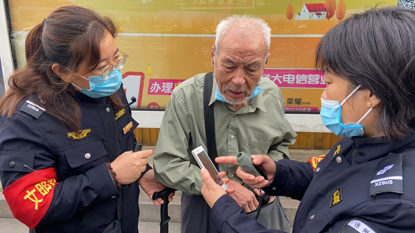 原來,10月20日上午,新一佳公交站臺督導(dǎo)員孫玲麗、成敏二人正在忙碌地疏導(dǎo)著上班高峰期的乘客時,發(fā)現(xiàn)一位老人在站臺上徘徊許久,遲遲沒有上車。孫玲麗、成敏見狀趕忙上前詢問老人情況,經(jīng)過一番溝通得知老人獨自外出,甚至無法清晰表達自己的姓名和家庭住址,幸虧在老人隨身攜帶的背包里找到了一個電話號碼,但由于電話一直處于無人接聽狀態(tài),督導(dǎo)員便立即撥打了110尋求幫助,最終將老人安全送上警車后懸著的心才放下來。