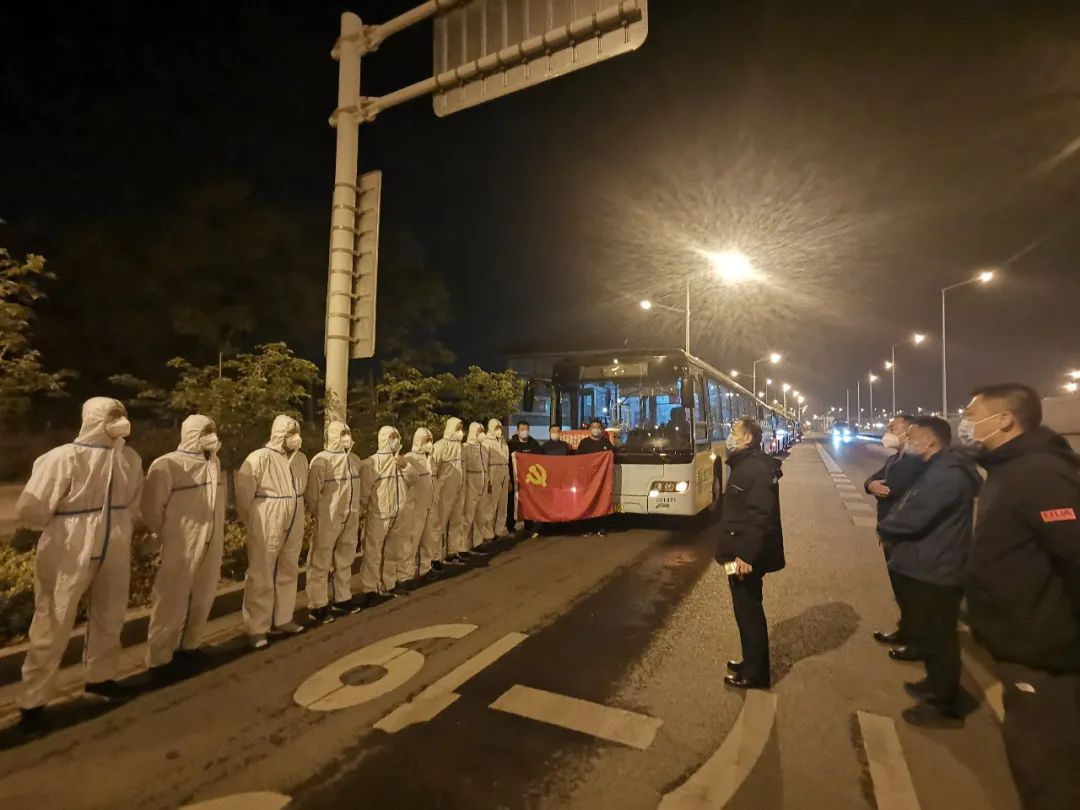 4月22日1:10分集結(jié)完畢。出行前,交控公交集團(tuán)黨委書記、董事長(zhǎng)高守江來到隊(duì)員們中間,滿懷激情地激勵(lì)大家:交控公交要承擔(dān)起國(guó)企責(zé)任,堅(jiān)決服從全市疫情大局,全力支持睢寧疫情防控工作。大家要團(tuán)結(jié)一心,到崗以后要服從大局、聽從指揮、遵守紀(jì)律、忠于職守,要切實(shí)加強(qiáng)安全防護(hù)。大家處在疫情防控的最前沿、第一線,既要發(fā)揚(yáng)越是艱險(xiǎn)越向前的斗爭(zhēng)精神,也要強(qiáng)化自我防護(hù)意識(shí),嚴(yán)格按規(guī)程開展工作,全體公交人都期盼你們?cè)缛談P旋歸來、平安歸來。