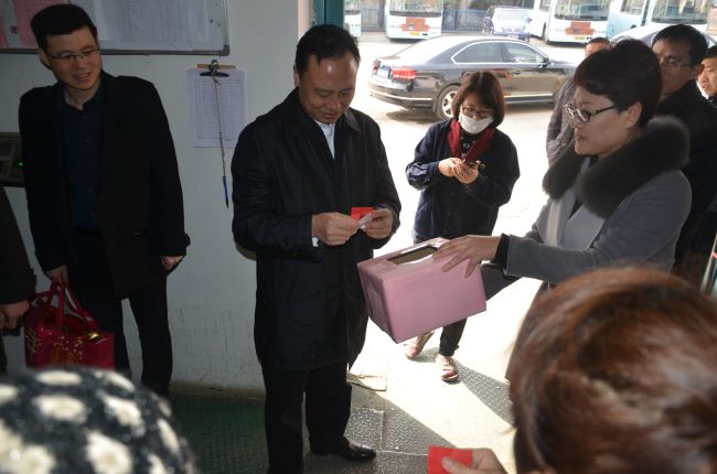 大年初一早晨,市交通運輸局局長蔡前鋒來到公交結算中心,向公交員工拜年。蔡局長饒有興致地參加了公交結算中心舉辦的迎新春“洋洋得意”抽大獎迎禮品活動。