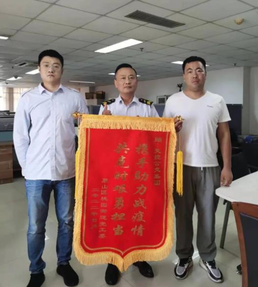 8月4日上午,泉山區(qū)桃園街道辦事處把一面印有“攜手助力戰(zhàn)疫情,共克時艱勇?lián)敗钡腻\旗和一封感謝信送到公交集團。