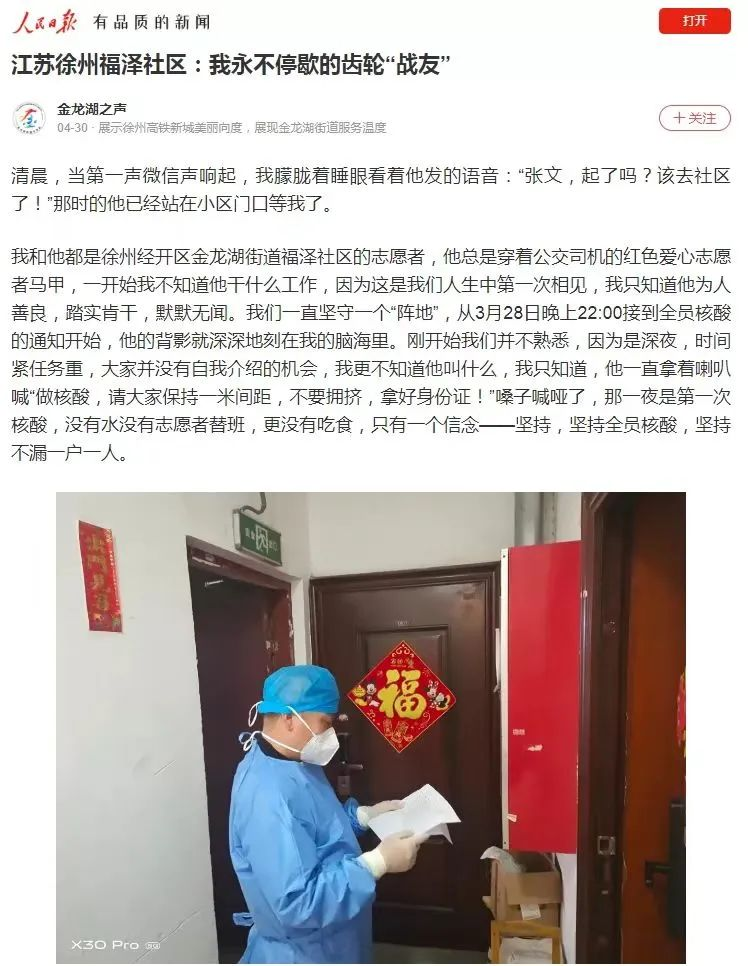 《人民日報》平臺發(fā)布文章《江蘇徐州福澤社區(qū):我永不停歇的齒輪“戰(zhàn)友 ”