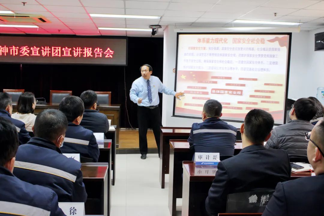 為學(xué)習(xí)貫徹黨的二十大精神,在全集團(tuán)迅速掀起學(xué)習(xí)宣傳貫徹黨的二十大精神熱潮,切實(shí)用黨的二十大精神統(tǒng)一思想、統(tǒng)一意志、統(tǒng)一行動(dòng),12月1日下午,公交集團(tuán)邀請市委宣講團(tuán)成員、徐州工程學(xué)院馬克思主義學(xué)院副院長周海航作黨的二十大精神專題宣講報(bào)告。集團(tuán)領(lǐng)導(dǎo)、基層運(yùn)營公司及直屬單位班子成員、機(jī)關(guān)部室負(fù)責(zé)人參加報(bào)告會(huì)。集團(tuán)黨委書記、董事長曹震作講話,黨委副書記、紀(jì)委書記、工會(huì)主席竇同銀主持會(huì)議。