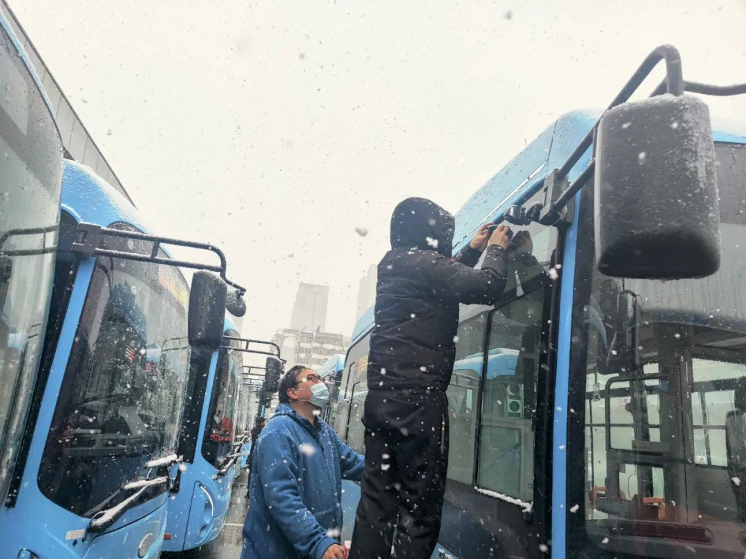 1月14日上午,徐州市氣象臺(tái)發(fā)布道路結(jié)冰黃色預(yù)警[Ⅲ級/較重],氣溫驟降,徐州迎來了2023年第一場冬雪。面對寒潮雨雪冰凍惡劣天氣,公交集團(tuán)立即啟動(dòng)特殊天氣應(yīng)急預(yù)案,集團(tuán)黨委委員、副總經(jīng)理丁玉華帶領(lǐng)安全環(huán)保部人員上線檢查,基層單位分管安全負(fù)責(zé)人以雪為令,多措并舉做好寒潮雨雪大風(fēng)天氣公交安全運(yùn)營工作,保障市民安全便捷出行。