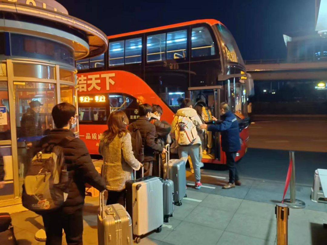 自2月12日至2月19日,順通公司根據(jù)學生返校的時間節(jié)點,分別在高鐵站和徐州站,精準投放公交運力。同時,公司工作人員輪流值守做好學生乘車引導、協(xié)助行李搬運歸置等工作,竭力為學子們提供更便利、貼心的公交出行服務。從2月12日至2月14日,定制班線已運營68班次,運送學生2363人次。