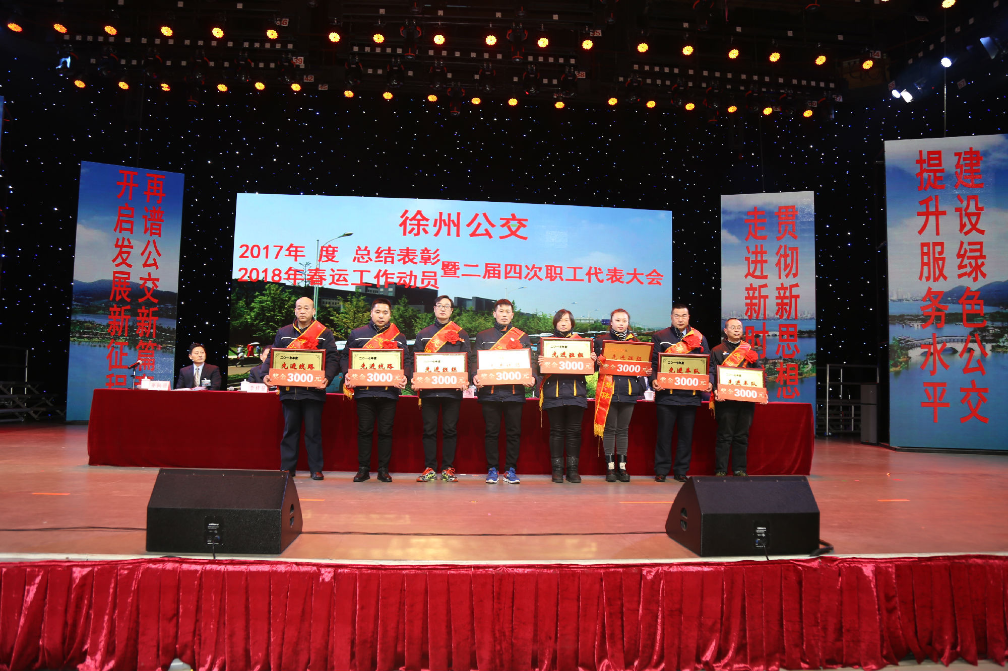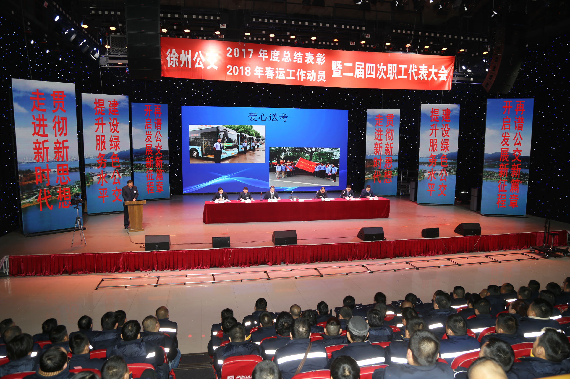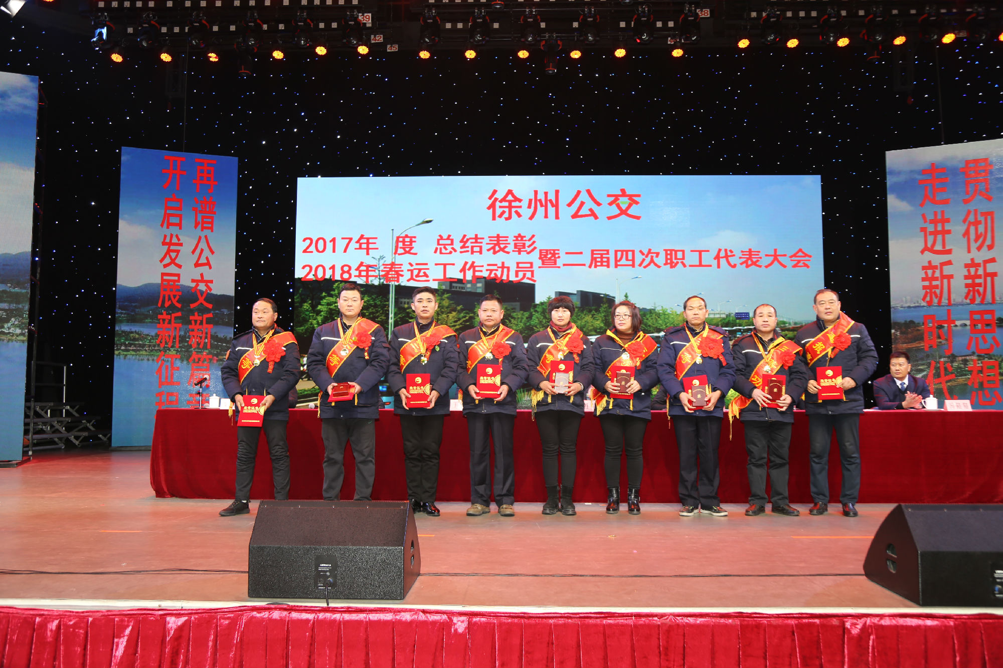 大會在莊嚴的國歌聲中拉開序幕。公司董事長、總經理杜紅軍首先作經理工作報告,對2017年“改革創(chuàng)新年”工作進行了全面總結:一、實施“同城同價”,優(yōu)化運營管理,實現(xiàn)服務水平新突破。連續(xù)第五年面向全市征集線路線網優(yōu)化意見近3000條,據(jù)此新辟優(yōu)化線路29條。二、深化資源共享,在互聯(lián)網+企業(yè)管理上譜寫新藍圖。繼續(xù)深化集中維修,推行集中例檢。論證實施支付寶、微信、銀行卡閃付等智能化移動支付方式。三、深化文明創(chuàng)建,打造優(yōu)秀公交,服務民生出行贏得新口碑。在國檢、省檢中未失一分,圓滿完成創(chuàng)建驗收任務。投訴總數(shù)和有責投訴同比實現(xiàn)“雙下降”。乘客表揚同比上升近20%。公司在2016年行風熱線上線單位滿意度評議投票中名列榜首。率先打造公交行業(yè)禮讓斑馬線嶄新形象,圓滿完成公交反恐防暴工作。四、著力綜合管理,聚合內生動能,增強企業(yè)發(fā)展新優(yōu)勢。重新修訂2012版管理制度匯編和新版《徐州公交獎懲條例》。五、踐行十九大精神,推進和諧發(fā)展,開創(chuàng)黨群工作新面貌。接著,杜總分析了工作中存在的問題,提出下步工作重點。一、建設現(xiàn)代化公交,提升經營管理水平,保障企業(yè)良性有序運行;二、踐行集約共享理念,深化科技應用,開創(chuàng)公交事業(yè)發(fā)展新局面;三、建設平安公交,提升服務口碑,展示文明公交新形象;四、踐行十九大精神,構建和諧公交,開啟黨群工作新面貌。