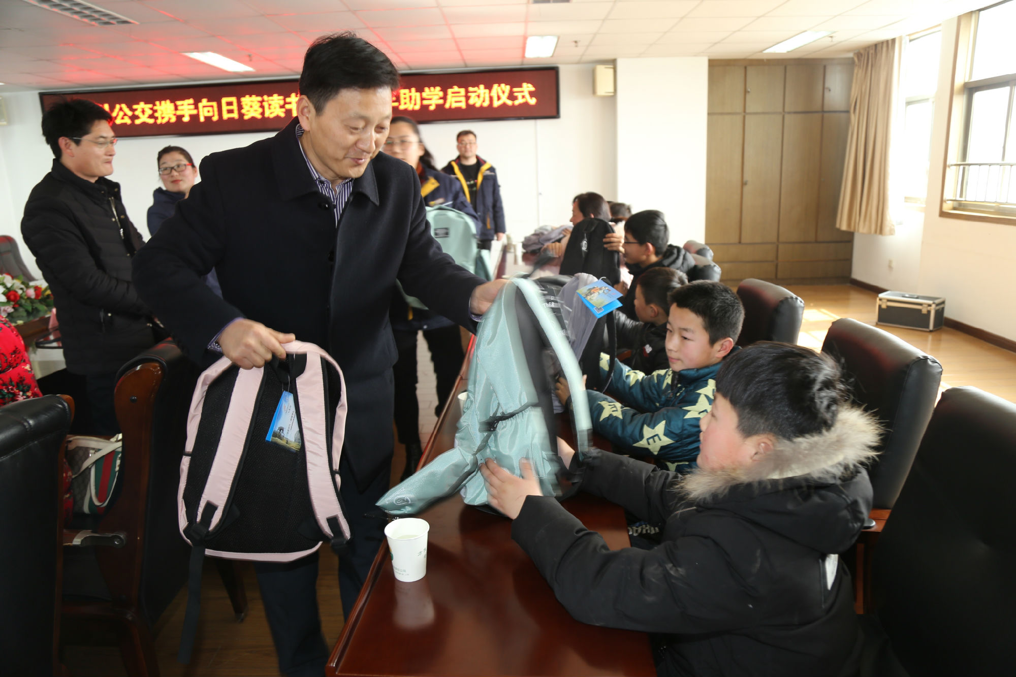 2月24日上午,徐州公交攜手向日葵讀書點2018年助學啟動儀式在有限公司十一樓會議室舉行。公司董事長、總經(jīng)理杜紅軍,工會主席竇同銀,調(diào)研員張同剛、祖伯鴻等領(lǐng)導(dǎo)出席了活動儀式。最美鄉(xiāng)村教師、江蘇省道德模范、向日葵讀書點負責人郁雪群,向日葵讀書點副會長、大固小學校長褚紅玉,向日葵讀書點副會長王光彪,受助家長代表張玲,邳州邢樓鎮(zhèn)受資助10名貧困兒童、5名小志愿者等受邀參加儀式。