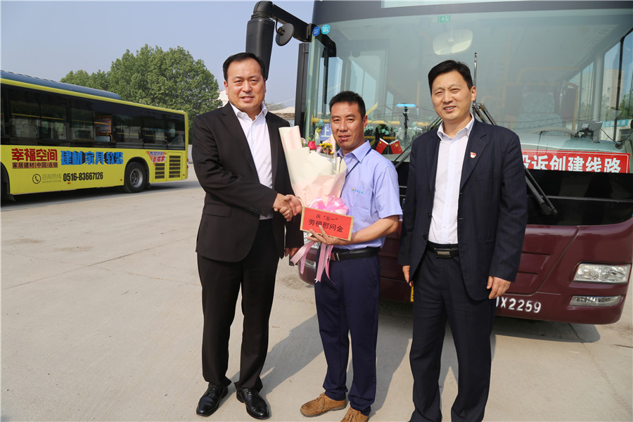 同時,蔣成彪和丁玉華帶隊分別看望慰問了10路楊鵬鵬、專1線邢運民、11路曹瑞國、19路閆翔、612路王超等5名省、市五一勞動獎章先進駕駛員。
