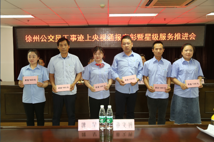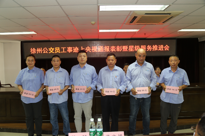 5月30日下午,公司隆重召開了“徐州公交員工事跡上央視通報表彰暨星級服務(wù)工作推進(jìn)會”,對近30多天來受到市以上新聞媒體,包括被央視宣傳報道的救助病人、照顧老人、見義勇為、優(yōu)質(zhì)服務(wù)的優(yōu)秀員工進(jìn)行了集中表彰獎勵,公司董事長、總經(jīng)理杜紅軍,工會主席竇同銀,調(diào)研員祖伯鴻及各單位分管領(lǐng)導(dǎo)、服務(wù)主管、政工員、先進(jìn)典型等一線員工代表82人參加會議。